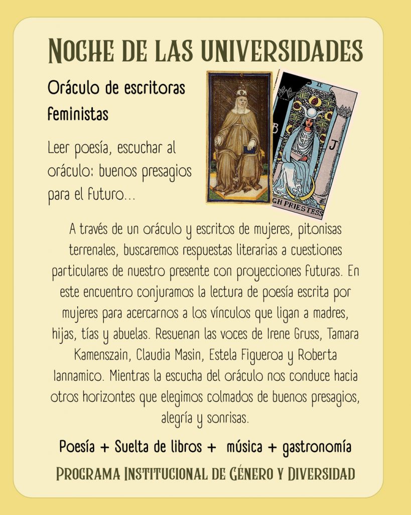 Actividad de la Red de Género: Oráculo de escritoras feministas, de 19 a 21hs. Comedor cultural.